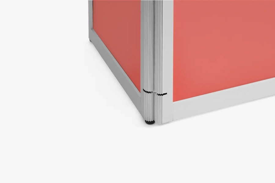 adBox Standard-modellen kjennetegnes av sin ekstremt raske, verktøyfrie montering. Trykkene er forhåndsinstallerte i rammene, noe som betyr at etter å ha fjernet disken fra bærevesken, åpner du ganske enkelt sidepanelene og sikrer dem med hyllen og bordplaten. Når toppen er lagt til, er produktet klart til bruk.
