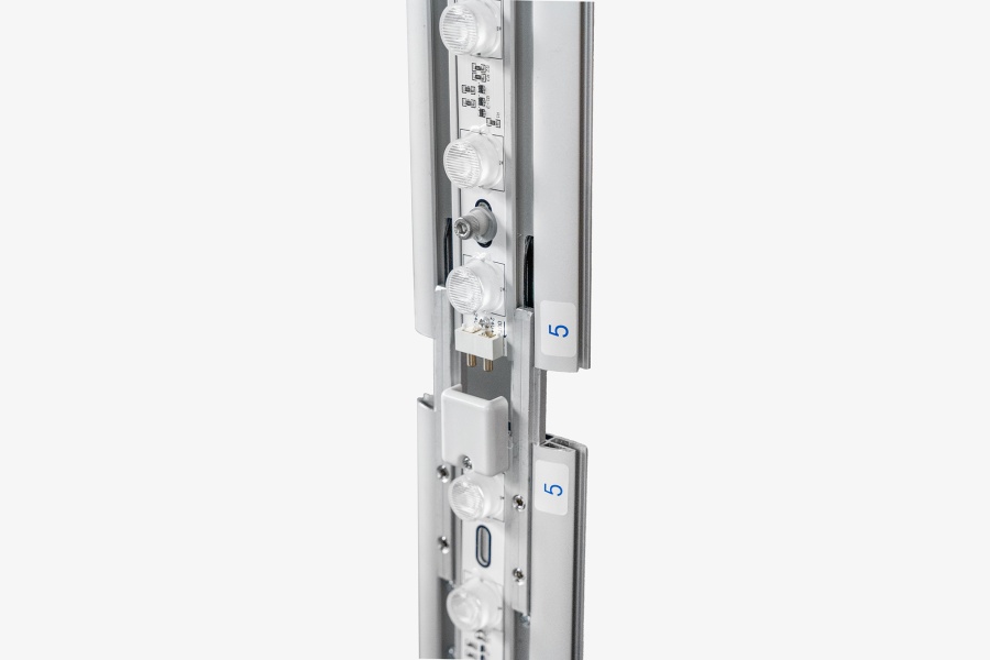 Monteringen av adFrame Quick er intuitiv og verktøyfri. Hver komponent er utstyrt med nummererte koblinger, noe som gjør strukturen enkel å sette sammen. For å feste trykket, setter du bare silikonstripen inn i sporene på rammen.