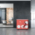 - Promosjon i butikker eller gallerier: Den mobile messedisken er et gjenbrukbart system som lar deg enkelt tilpasse standen til pågående kampanjer.