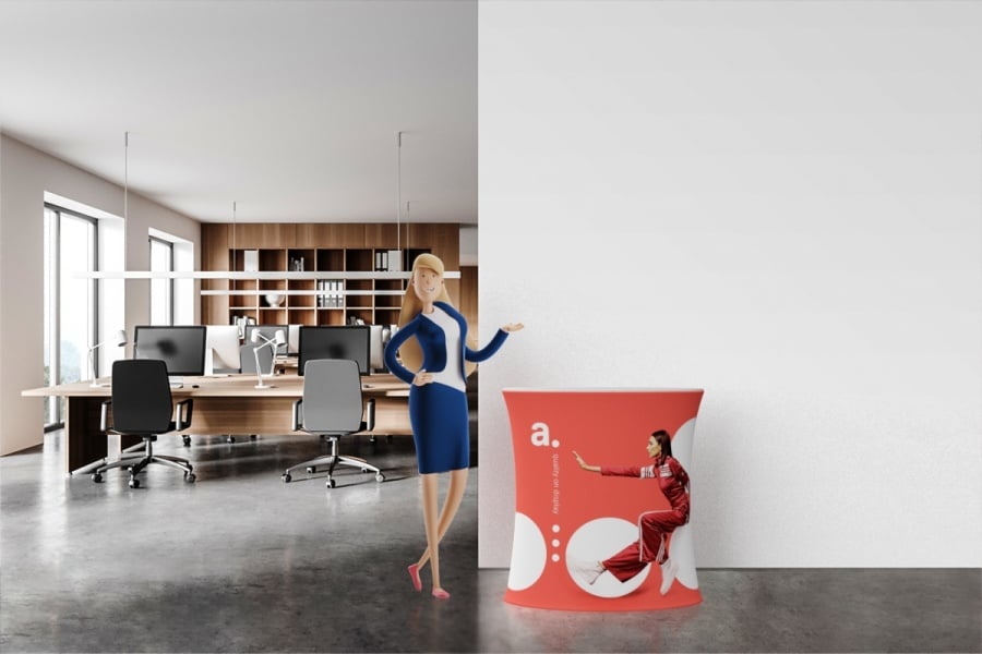 Et messebord som passer like bra til konferanser, gallerier og messer, som til utstillinger! Med adTribune Oval får du en praktisk oppbevarings- eller utstillingsplass for produkter, samtidig som du tiltrekker oppmerksomhet. Velg din egen grafikk – og synliggjør budskapet ditt!