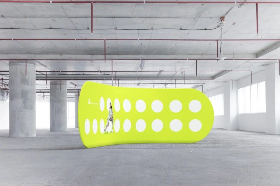 2 reklamesøyler adColumn – støtter promotering ved å bli et ekstra element for å markere arrangementet. De kan brukes til å vise viktige punkter på kart eller skape variasjon i soner. Søylenes mål er diameter 60 cm og høyde 320 cm, og de har også konstant lufttrykk.