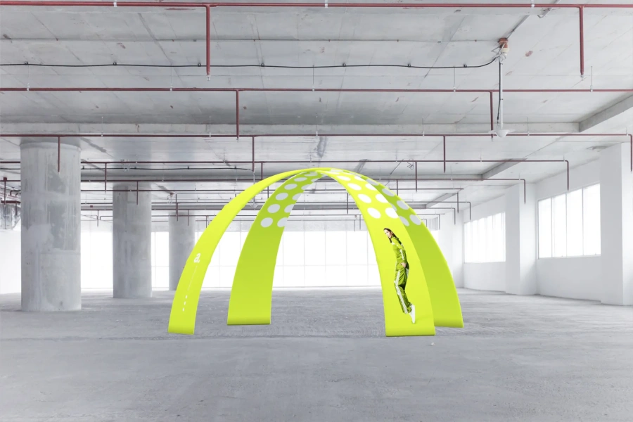 adTent Air Premium 5×5 m – Et oppblåsbart reklametelt med fire selvbærende støtter og trykkventiler som holder konstant lufttrykk. Ingen verktøy trengs – du fester enkelt tak og vegger med glidelås og blåser det opp. Stoffet er impregnert og tåler dårlig vær, samtidig som det gir stor flate for trykket grafikk. Perfekt til festivalscener og utendørsområder hvor rask montering er viktig.